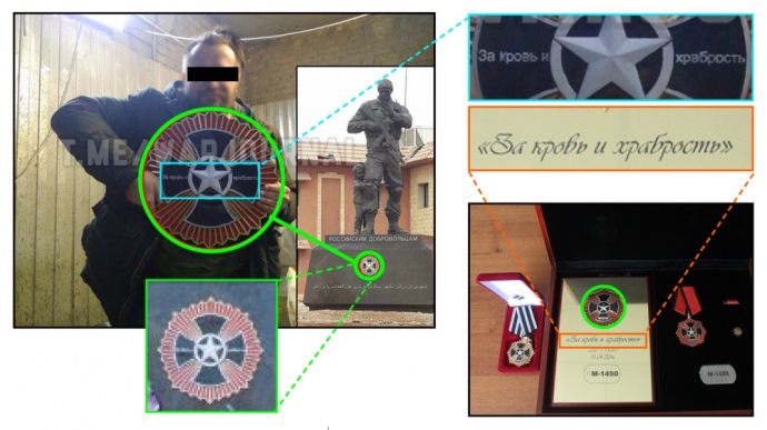 На "вагнерівському хресті" також є напис "За кров і хоробрість", яка є і на нагороді на п'єдесталі.