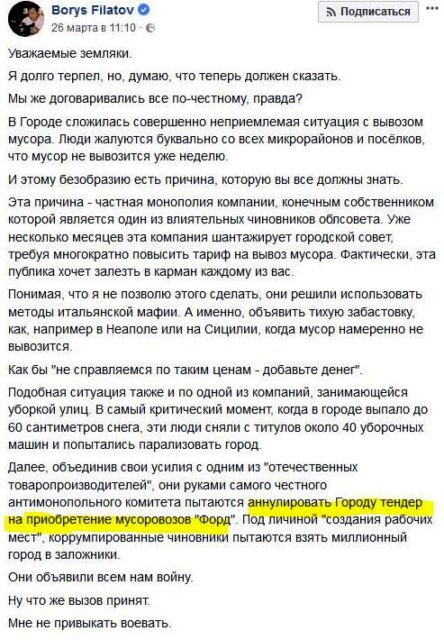 У виданні наголошують, що мер Борис Філатов раніше особисто захищав комунальників, які оголосили тендер за завищеними цінами та обмежили до нього доступ учасників.