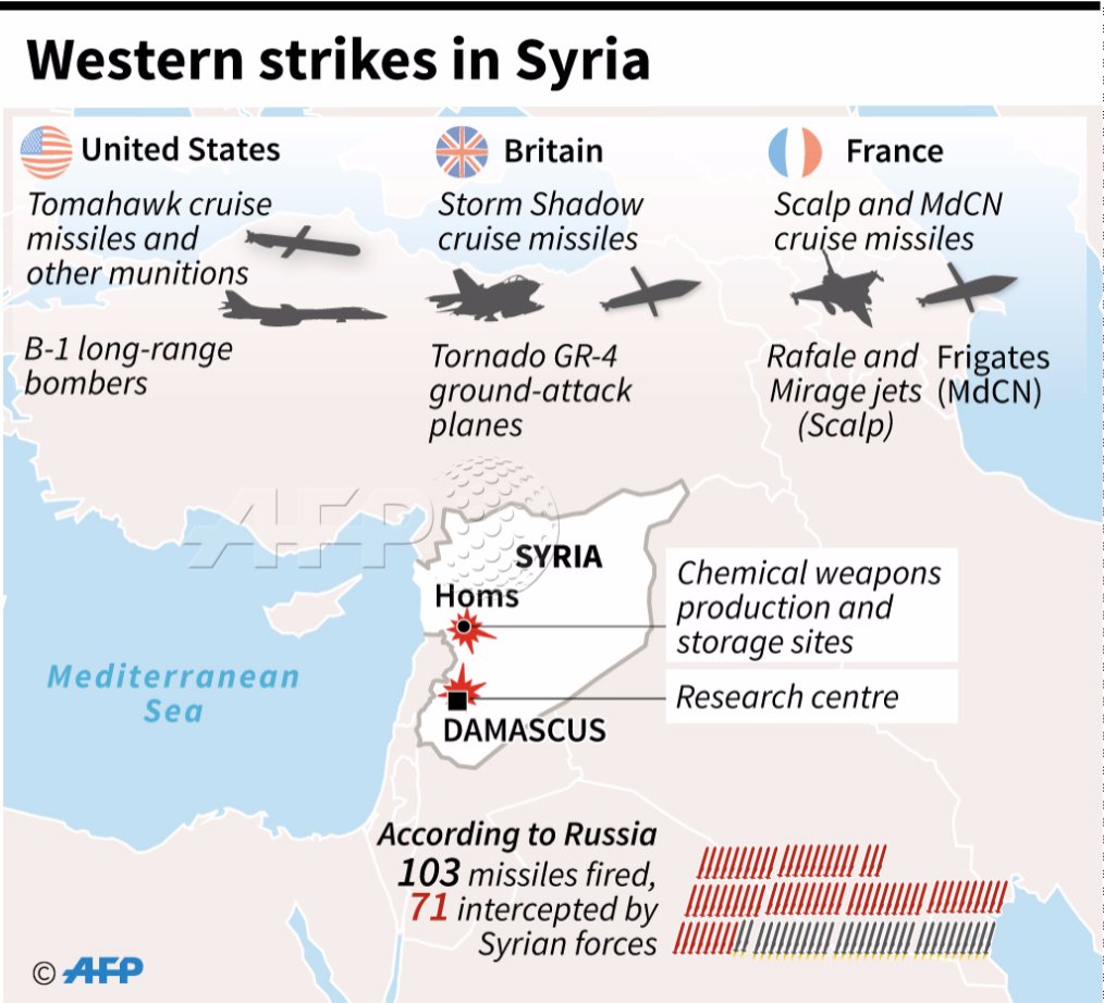 Нагадаємо, в ніч на 14 квітня США, Франція і Великобританія завдали ударів у Хомсі у відповідь на застосування президентом Сирії Башаром Асадом хімічної зброї проти цивільних осіб: крилаті ракети було спрямовано на військовий об'єкт в 15 милях на захід від Хомса, який, як вважають, є місцем виробництва елементів хімічної зброї.