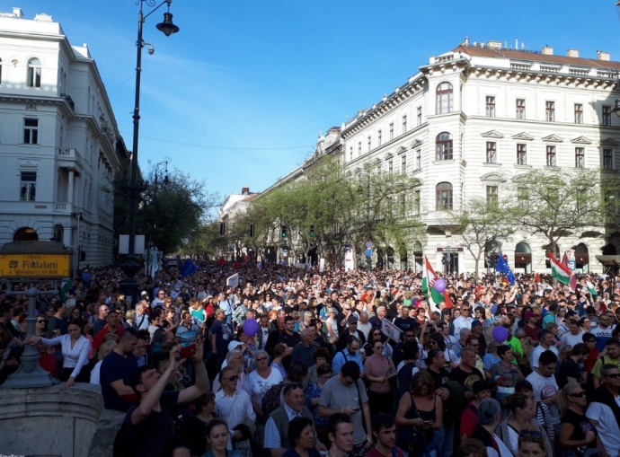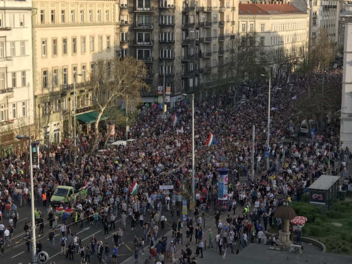 Huge crowd marching in Budapest and yelling "regime change" #Hungary pic.twitter.com/OzWYzmWANP