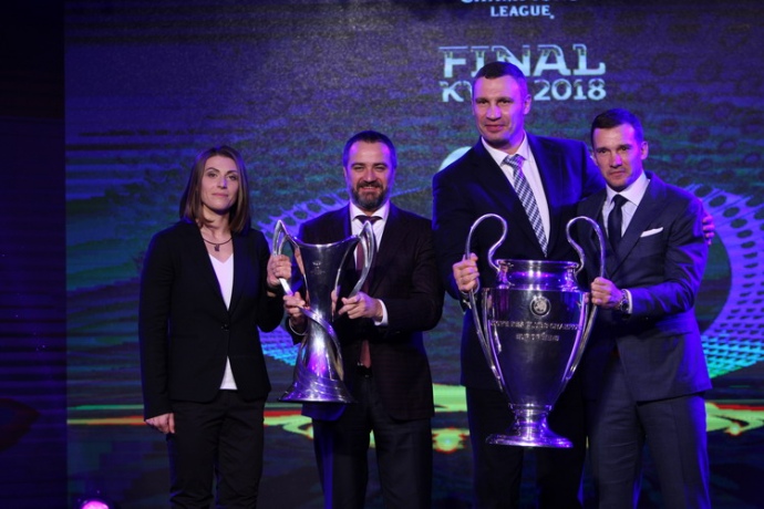 Трофеї привезуть амбасадори фіналів Ліги чемпіонів серед жінок та Ліги чемпіонів УЄФА сезону-2017/2018 — Ія Андрущак та Андрій Шевченко.
