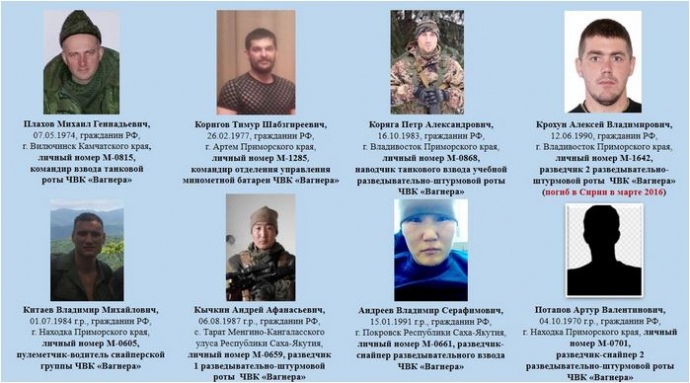 Служба безпеки України оприлюднила список найманців приватної військової компанії "Вагнер", яких військово-морські сили Росії переправили до Сирії.