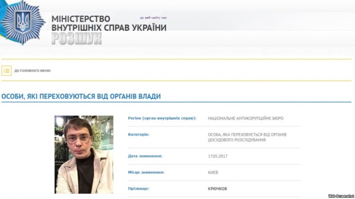 В липні 2016 року НАБУ оголосило Крючкова в розшук.