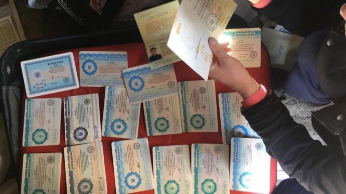 "26 квітня проведено низку санкціонованих обшуків, за результатами яких припинено діяльність злочинного угрупування, що спеціалізувалось на виготовленні та збуті підроблених дипломів про вищу освіту та інших документів", - йдеться в повідомленні