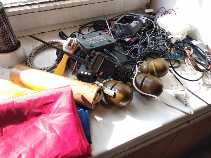 "Під час санкціонованих судом обшуків у чоловіка виявлено та вилучено 6 гранат із запалами до них, міна, підривник до міни, 2 пістолети, набої до них, бойові ножі та амуніцію", – заявляє відомство.