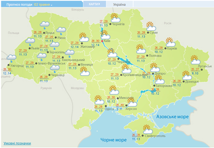 Згідно з прогнозами синоптиків 2 травня в Україні температура підніметься до 30° тепла, лише в західних регіонах можливі дощі.