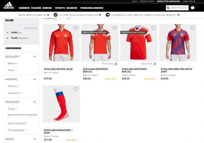 Пошукові запити по сайту компанії більше не видають продукцію з радянською символікою, одяг із сучасною російською символікою залишився.