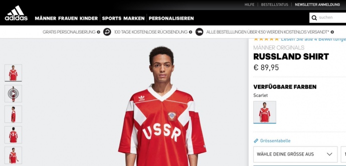 Раніше повідомлялося, що компанія Adidas створила до Чемпіонату світу з футболу в Росії жіноче плаття, яке є частиною цілої серії, на якому демонструється герб Радянського Союзу і напис англійською "СРСР".