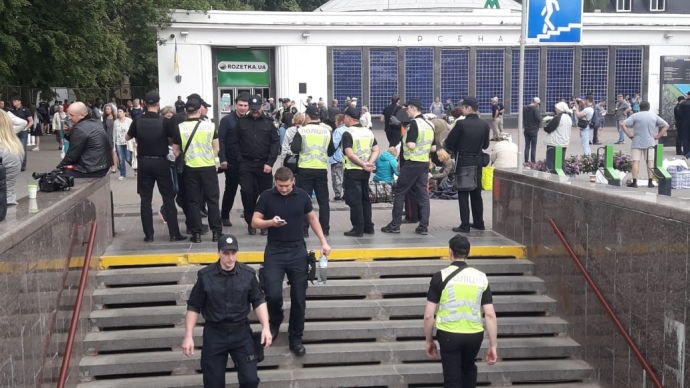Біля виходу з метро на "Арсенальній" чергують посилені наряди поліції.