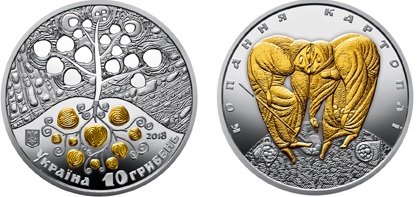 Національний банк збирається запустити в обіг срібну монету номіналом 10 гривень під назвою "Копання картоплі", присвячену вирощуванню цієї культури в Україні.