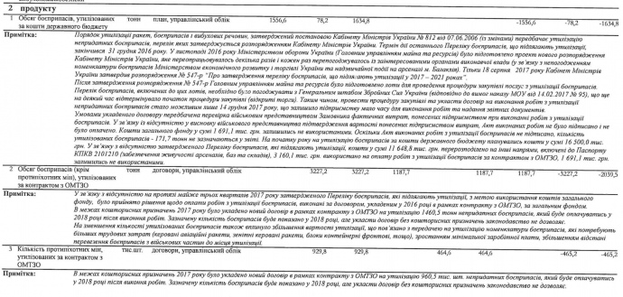 Таким чином на утилізацію передано в рази менше боєприпасів від запланованих цифр, 1187 тонн за згаданим контрактом з ОМТЗО та 464 тисяч протипіхотних мін.
