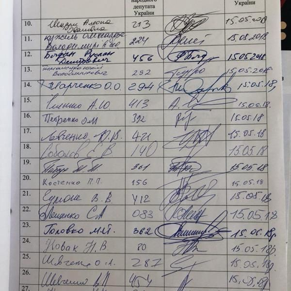 Із трибуни Верховної Ради 16 травня він заявив, що під відповідною ініціативою вже підписалися 37 народних депутатів, – і показав відповідні аркуші.
