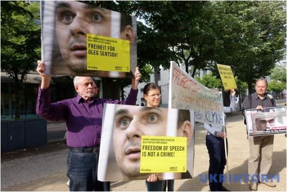 У середу, 16 травня, під посольством РФ у Берліні пройшов пікет на підтримку політв'язнів Олега Сенцова, Олександра Кольченка і Станіслава Клиха.