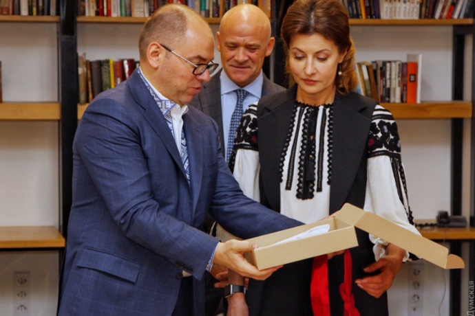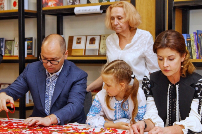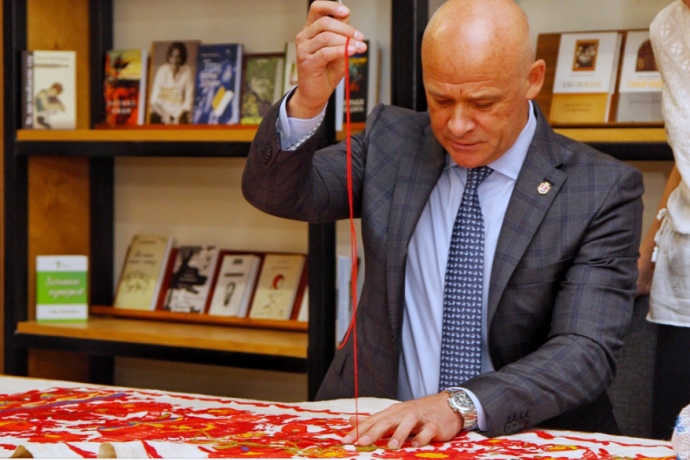 Дружина президента Марина Порошенко разом зі школярами та мером Одеси Геннадієм Трухановим, який знаходиться під слідством Національного антикорупційного бюро, вишивала семиметровий рушник національної єдності.