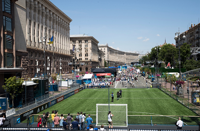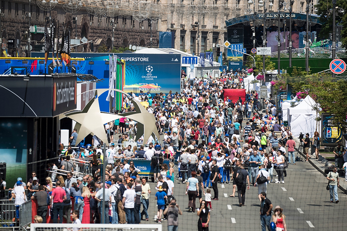 24 травня на Хрещатику у Києві відкрили містечко "Фестиваль чемпіонів" для футбольних уболівальників Ліги Чемпіонів.