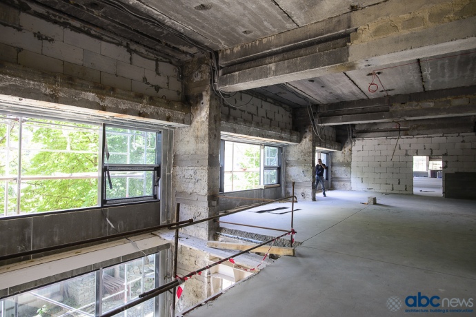 "Було вирішено проводити внутрішні роботи, починаючи з верхніх поверхів. Це зручніше з точки зору логістики, перший поверх зараз частково виконує функцію складу будматеріалів", - пояснив Білик.
