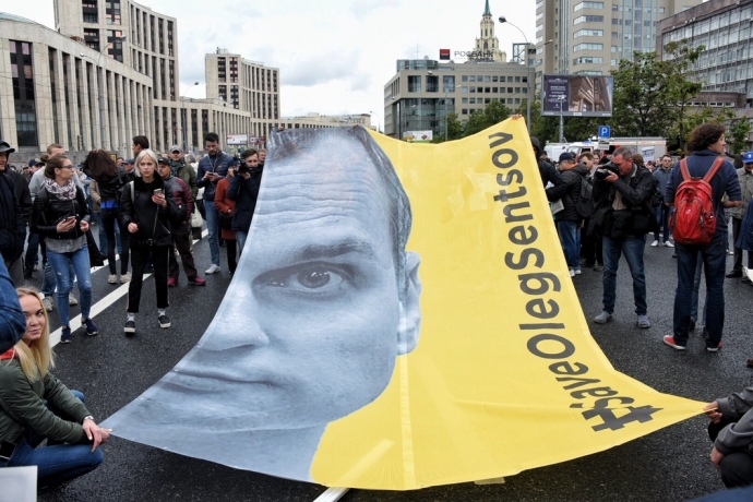 На мітингу в Москві розгорнули банер на підтримку Сенцова