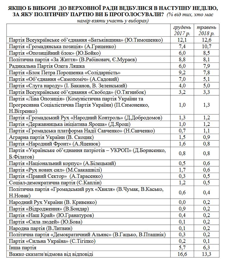 Трохи відстають від них "Радикальна партія Олега Ляшка" (7,9%) й "Блок Петра Порошенка "Солідарність" (7,8%).