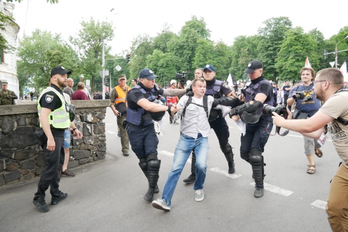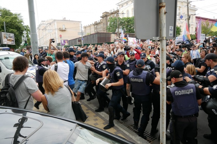 Пізніше поліція вивела з колони кількох противників Маршу, які забігали всередину, намагаючись перешкодити його руху, а також трьох людей, які перед колоною кричали "Україна не Содом!".