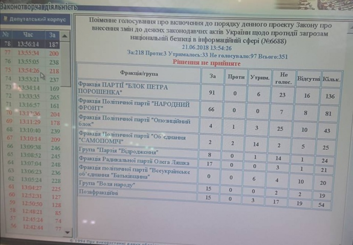 Червакова також показала, які політичні сили і в якій пропорції голосували за внесення законодавчої ініціативи до порядку денного Верховної Ради.