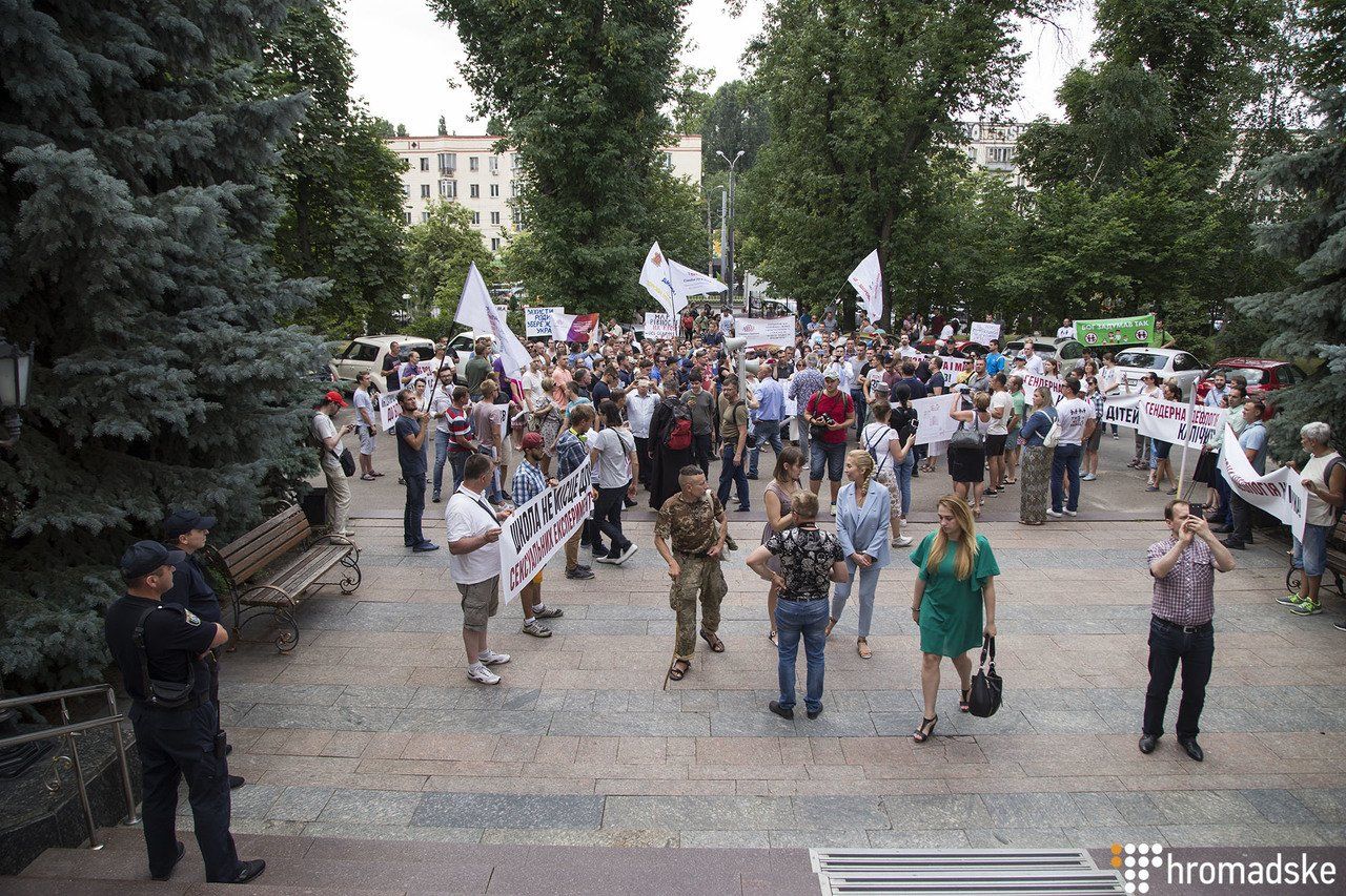 До мітингувальників підійшов народний депутат із фракції "Народний фронт" Юрій Тимошенко, який висловився на підтримку їхніх гасел.