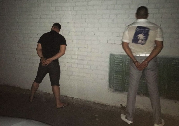 Повідомляється, що затримані вимагали від київського бізнесмена 35 тисяч доларів за нібито охорону його готелю.