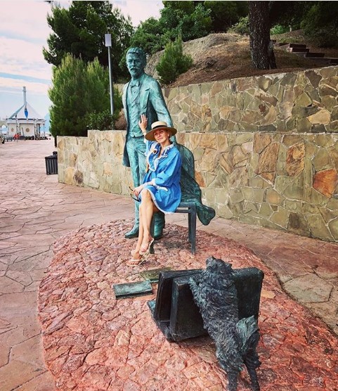 Дружина Пєскова поділилася фотографіями з Ялти та Сімеїзу, де вона позує біля пам'ятника письменнику Антону Чехову у Сімеїзі і фото разом з Пєсковим біля санаторію "Меллас".