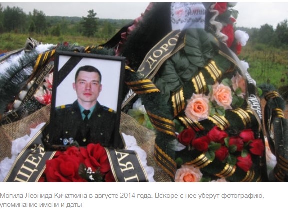 У матеріалі НГ зазначається, що на безіменних могилах у Пскові та його околицях, які з'явилися у 2014-му і з яких "люди у камуфляжі і блакитних беретах за наказом командирів знімали з хрестів таблички з іменами і датами", через 4 роки з'явилися гранітні пам'ятники з портретами, на яких виписано знаки розрізнення.