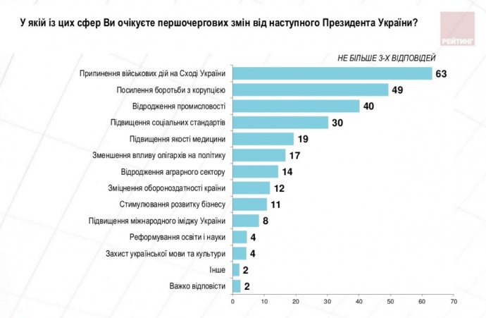 Вимога більшості українців до наступного президента полягає у припиненні військових дій на Сході.