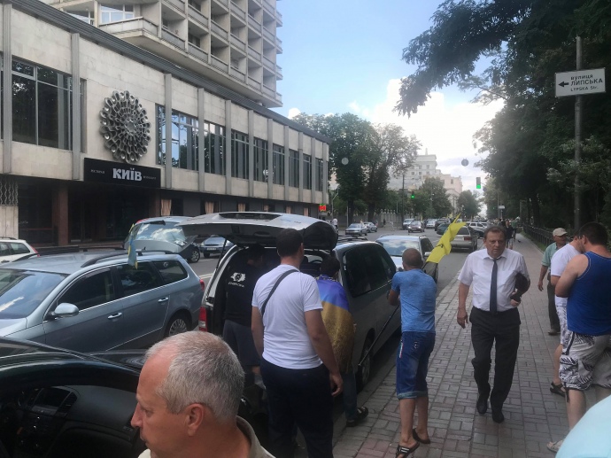 12 липня в центрі Києва позашляховик народного депутата Павла Пинзеника наїхав на одного з учасників акції власників машин на євро номерах, які блокували проїзд біля Верховної Ради.
