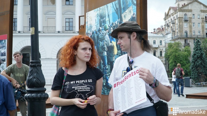 Вони вийшли з плакатами Save Oleg Sensov, у футболках на підтримку Сенцова, а також зі списком усіх політв’язнів Кремля.