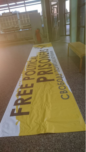 Зазначається, що активістів затримали 15 липня близько третьої години ночі, банер та інші плакати забрали на експертизу.