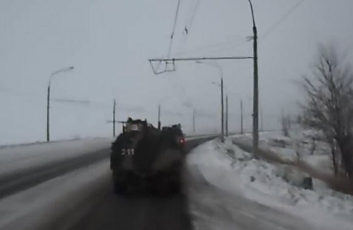 Dec2014 PMC Wagner's video: At 02:28-03:18 in the video the column is moving from #Molodohvardiysk to #Sorokyne - its route is https://t.co/kGqrfb8TSk (video shows the overhead wires of the trolleybus route #1 betw/ Molodohvardiysk & Sorokyne https://t.co/DWo36cGMzP) pic.twitter.com/pqv1iETzid