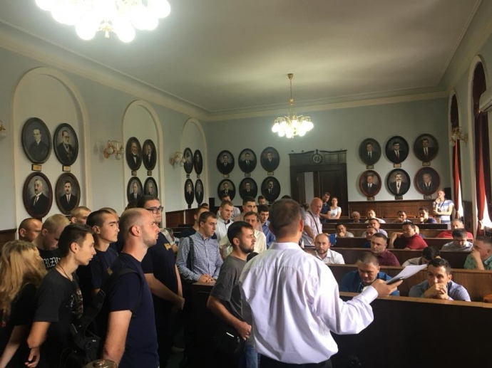 Вона стверджує, що мер міста Олексій Каспрук після того, як побачив Нацкорпус, "не з’явився у сесійній залі й зник", проте 20 липня сесія міськради мала б відбутися.
