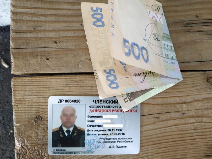 Зокрема, під час огляду автомобіля Toyota Corolla було виявлено схованку з документами із символікою "ДНР", оформлені на мешканця Донецька, громадянина К.: службове посвідчення "Международная национально-патриотическая и спортивно-оборонная организация ДНР "Казачество ДНР", знак якості "Народный контролёр общественного движения "Донецкая республика" та членський білет громадського руху "Донецкая республика".