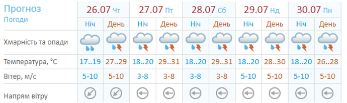 У Києві 26 липня очікуються грози і дощі.