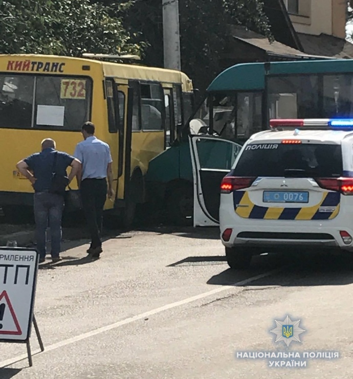 У місті Вишневе, що під Києвом, сталася ДТП за участю трьох маршрутних автобусів, постраждали двоє водіїв та двоє пасажирів.