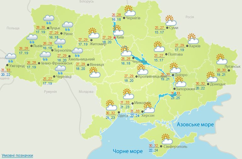 Перший день серпня буде спекотним на півдні та південному сході, на заході очікуються дощі