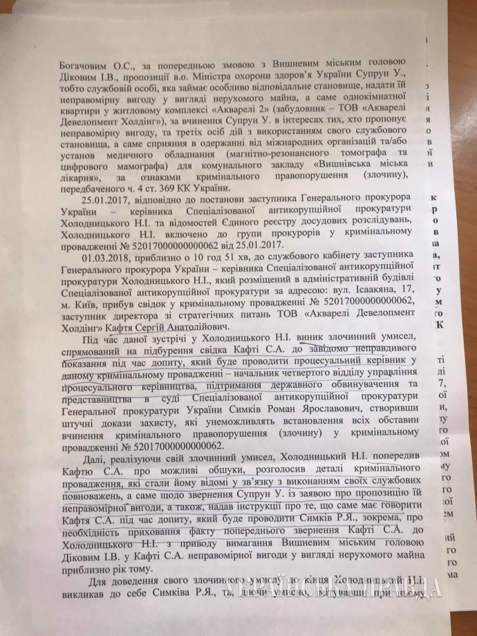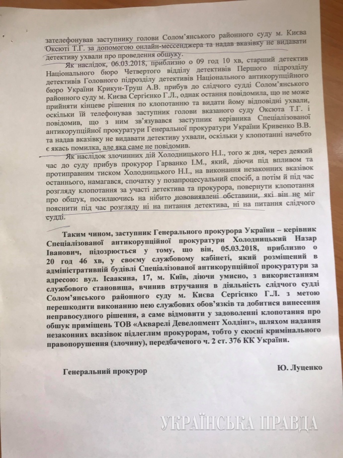 УП вже коротко повідомляла про суть підозри Холодницькому, датованої 31 березня 2018 року.