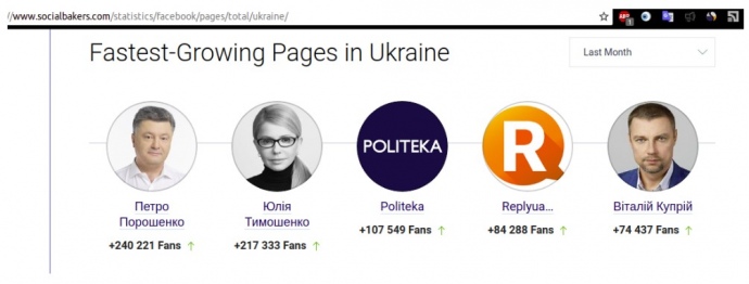 "Сторінка президента - одна з найпопулярніших серед українських політиків. На неї підписано понад 1,4 млн користувачів, і кількість підписників зростає - з 2 липня до 11 серпня кількість вподобань сторінки зросла майже на 300 тисяч. При цьому на сторінці одночасно рекламують десятки дописів, одні з них безпосередньо стосуються діяльності президента, інші просто закликають вподобати цю сторінку", - зазначають у громадському русі.
