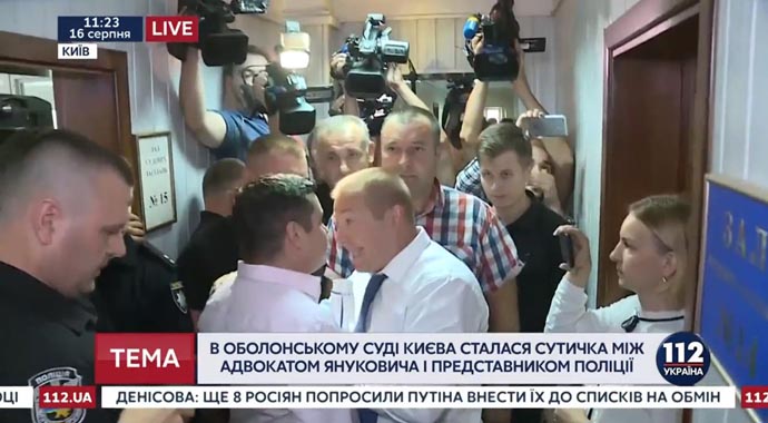 В Оболонському районному суді, який розглядає справу про державну зраду колишнього президента Віктора Януковича, сталася штовханина.