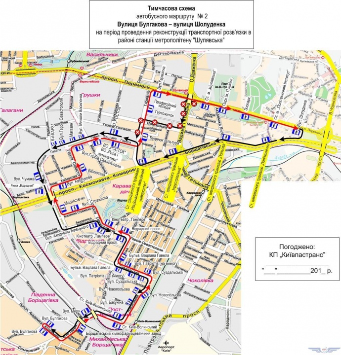 Також буде змінено рух автобусів №2. "Київпастранс" оприлюднив схему зміненого маршруту.
