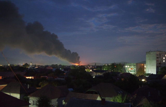 Як повідомляє Мukachevo.net, вогонь охопив всю будівлю, вибухи було чути на все місто.