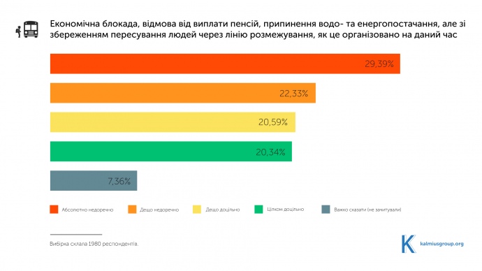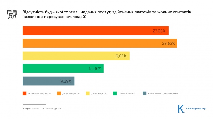 Натомість, найменш бажаними є відсутність торгівлі, можливостей для надання послуг, здійснення платежів та контактів (включно з пересуванням людей) – 35% населення загалом і 30% жителів Донбасу сприймає це доречним.