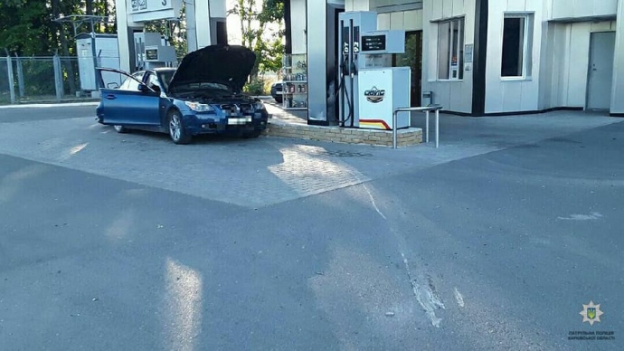 За декілька хвилин вже на Салтівському шосе керманич "BMW" здійснив зіткнення з "Mercedes-Benz", після чого наїхав на автозаправку.