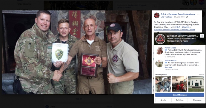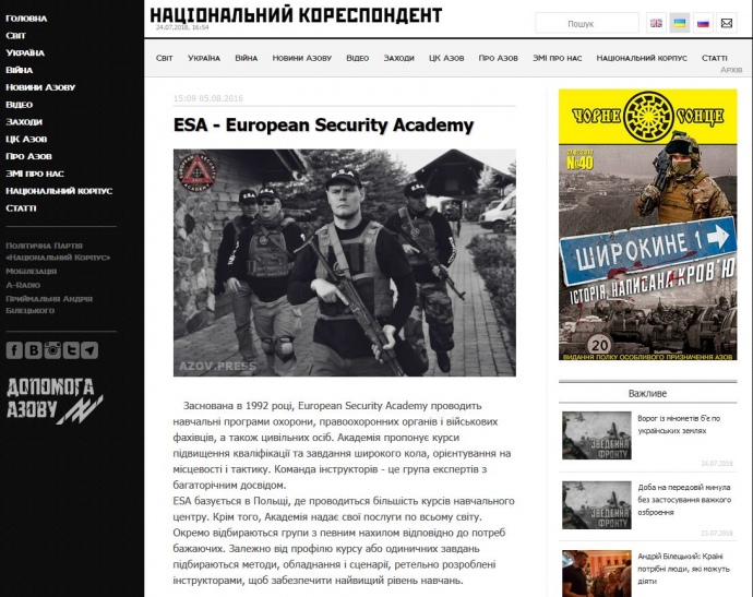 Європейська компанія European Security Academy, яка пропонує програми тренувань для сил безпеки, правоохоронних органів і військових, в 2016 році тренувала український полк "Азов".