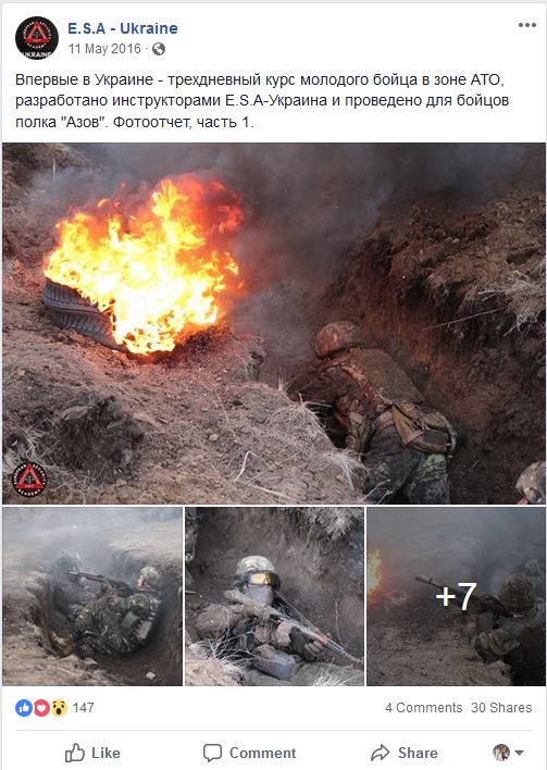 Зокрема, за інформацією Bellingcat, в 2016 році інструктори ESA провели для "Азова" в Україні інтенсивний тижневий курс навчання, створили для полку триденний курс молодого бійця в зоні АТО, а також проводили і інші курси для ветеранів "Азова" і активістів руху.