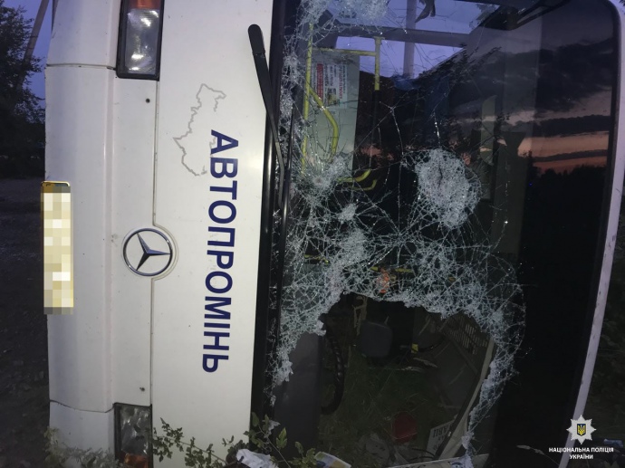 За попередньою інформацією, 34-річний водій автомобіля "Audi" не надав автобусу перевагу в русі, внаслідок чого сталося зіткнення, після чого автобус перекинувся на бік.