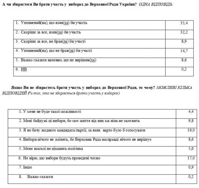 У Раду проходять 7-8 партій, а 1/5 виборців не хочуть іти голосувати