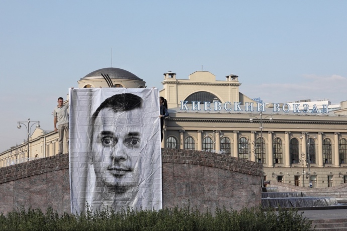 У Москві активісти розтягнули банер на підтримку українського політв’язня Олега Сенцова.